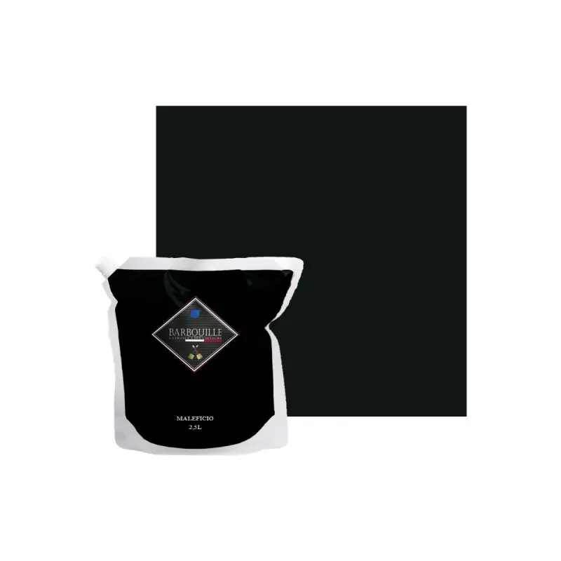 The washable satin acrylic paint BARBOUILLE - For walls, ceilings, furniture, and wood - 2.5L - Black Maleficio is ideal for indoor use in all rooms of the house for furniture or woodwork as well as for outdoor use. It has the advantage of being made from a washable formulation that allows you to clean your walls and ceilings without the risk of damage. The application of the paint is designed to be very simple, aimed at limiting the risk of touch-ups and preventing dusting. Halfway between a matte and glossy finish, this satin paint is distinguished by its slightly shiny effect that allows for good light reflection. This Black Maleficio combines elegance and modernity. Made in France, this paint is eco-friendly and certified carbon neutral.