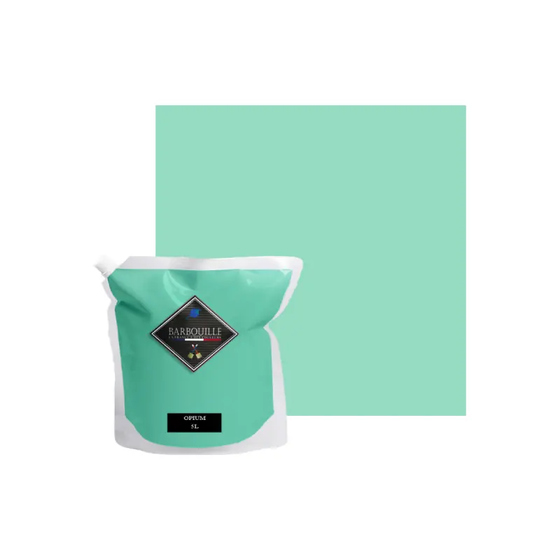 The washable satin acrylic paint BARBOUILLE - For walls, ceilings, furniture and wood - 5L - Opium Green is ideal for indoor use in all rooms of the house for furniture or woodwork as well as for outdoor use. It has the advantage of being made from a washable formulation that allows you to clean your walls and ceilings without the risk of deterioration. The application of the paint is designed to be very simple, aimed at limiting the risk of touch-ups and preventing chalking. Halfway between a matte and glossy finish, this satin paint is distinguished by its slightly shiny effect, which allows for good light reflection. This green will remind you of the one found in Tiffany-style stained glass or in many restaurants in the Montparnasse district of Paris. Made in France, this paint is eco-friendly, being certified carbon neutral.