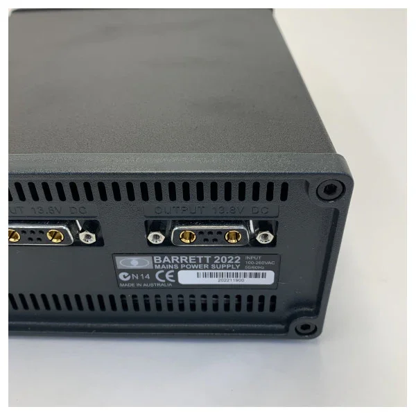 The Barrett 2022 Power Supply is designed to provide a reliable and regulated power supply, crucial for the Barrett 2000 series HF transceivers and accessories. The distinctive 'no-break' battery backup system ensures that operation continues without interruption during a power failure, which is essential for data applications and preventing modem resets. This makes the 2022 ideal for use in environments where mains power is unpredictable.