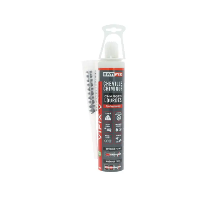 TheBATIFIX heavy-duty chemical sealant - Stone colour - 300mlis suitable for hollow and solid materials with increased resistance, making it usable for heavy loads. It can support up to 2 tonnes depending on the materials while being usable in extreme conditions. You can use it with concrete (including cracked), concrete blocks/bricks, hollow bricks, or cellular concrete.