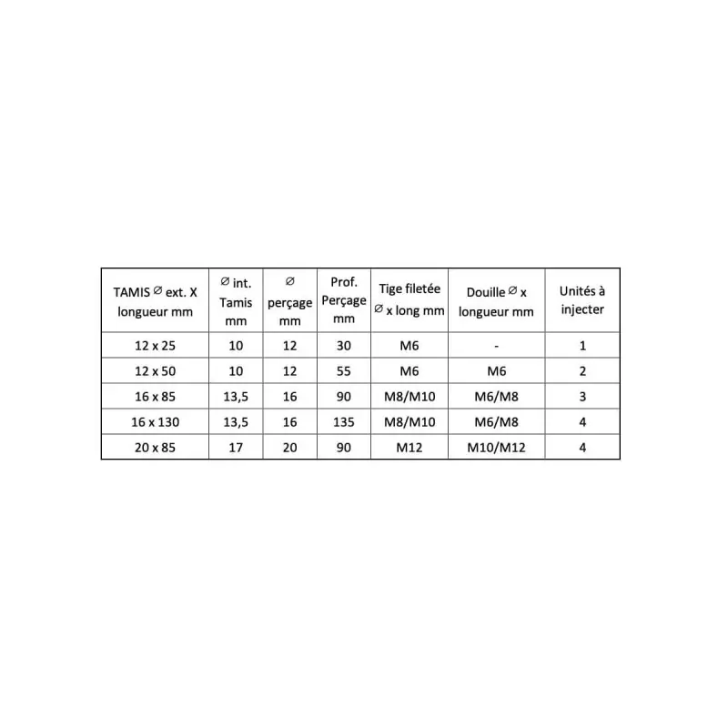 Sieve for chemical fixing by resin injection for hollow materials