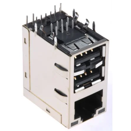 Bel-Stewart MagJack Series Female RJ45 Connector, Through Hole, STP Shield Right Angle RJ45+Dual USB -Way - 6620004-1