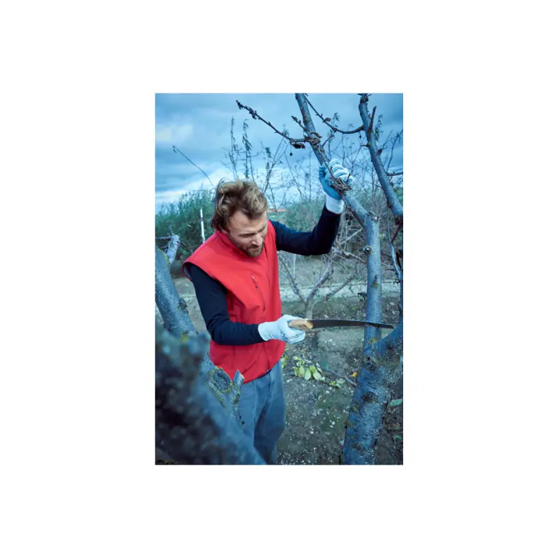 This BELLOTA Japanese pruning saw - 458713 features Japanese teeth with a blade sharpened on three sides. Ideal for trimming woody plants such as olive trees, fruit trees, vines, etc., this tool offers great comfort of use with its certified beech wood handle that allows for a good grip. A protective sheath is provided for safe transport.