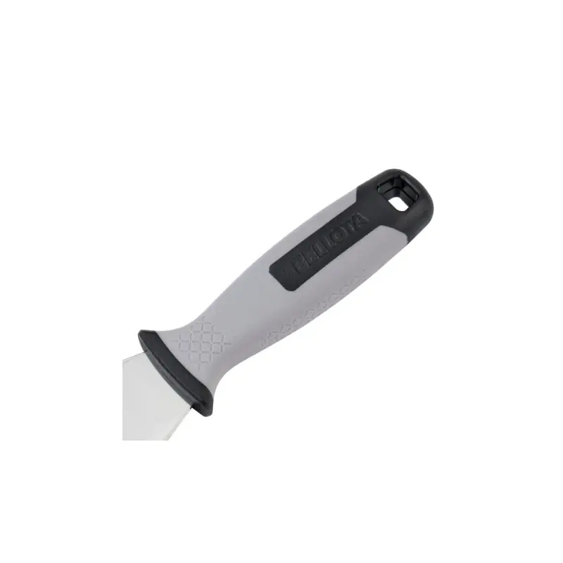 This BELLOTA spatula - 5890100BIM is made from high-quality carbon steel for maximum durability without deterioration. The blade is ground, aligned, and polished with excellent flexibility, as well as assured comfort during work thanks to its very ergonomic bi-material handle. This tool is ideal for finishing work, plastering, filling cracks, or driving in protruding nails.