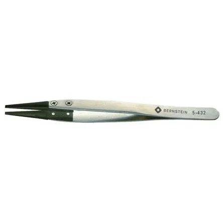 Bernstein ESD Plastic Tipped Tweezers. ESD safe precision tweezers with soft, conductive plastic tips for working on very sensitive assemblies and devices. High stability and consistency Anti-magnetic Acid resistant Interchangeable tips Good heat resistance Marked with part number on handle for quick identification of the right tool for the job
