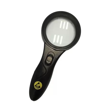 The Bernstein Illuminated Handheld Magnifier provides 5X magnification for enhanced visibility.