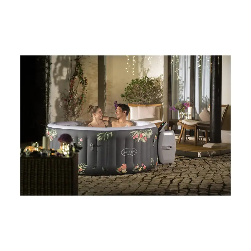 Feeling like unwinding after a tiring day? The BESTWAY Lay-Z-Spa Aruba Airjet Inflatable Round Spa for 3 people is the perfect product for relaxation. Featuring a soothing massage system, the device has 110 jets producing bubbles from the bottom of the spa. Durable, the walls of the product are made from an innovative and long-lasting material called DuraPlus, which has a triple layer that is 33% more tear-resistant and 56% more stretch-resistant than traditional PVC. Additionally, thanks to this material, the structure of your spa will remain stable while retaining its shape over time. With this spa, you will also find a ChemConnect diffuser that allows for the even distribution of chlorine according to your needs. This accessory helps to prevent overdoses and ensures effective treatment of your spa. Thus, you will be in a relaxing, warm, and healthy environment that can reach up to 40°C.