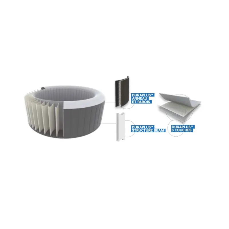 - "I" shaped reinforcement: a PVC piece in the internal structure connects the top and bottom of the spa in an "I" shape
