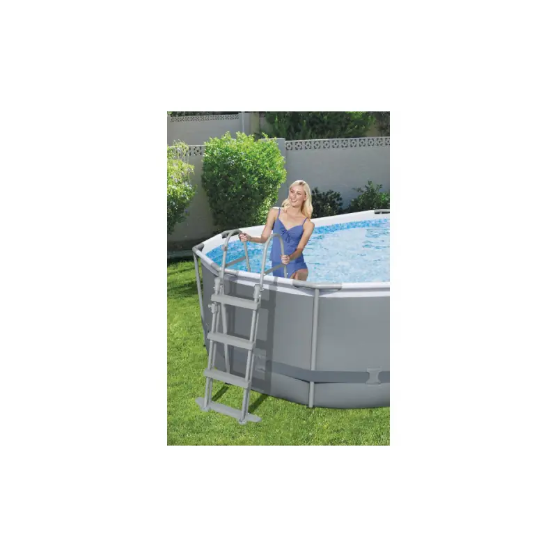 The BESTWAY oval tubular pool - 488 x 305 x 107 cm - 10,949 L - Power Steel - 56448 will be ideal for combating the summer heat in complete relaxation in your garden. With its large dimensions, it can accommodate several people for enjoyable moments with family or friends. With a height of just 1.07 m, even children can swim without any problems. The kit is designed to simplify installation for users without the need for any tools. The pool has a good lifespan thanks to its DuraPlus liner, which has high resistance to UV treatment protecting against the sun, as well as corrosion protection for the structure and the Seal & Lock system that prevents friction between the tubes while limiting the appearance of rust. As for the water in the pool, the filtration pump helps to clean the pool, and the chlorine dispenser fights against bacteria. A ladder is also included in the box for entering the pool.