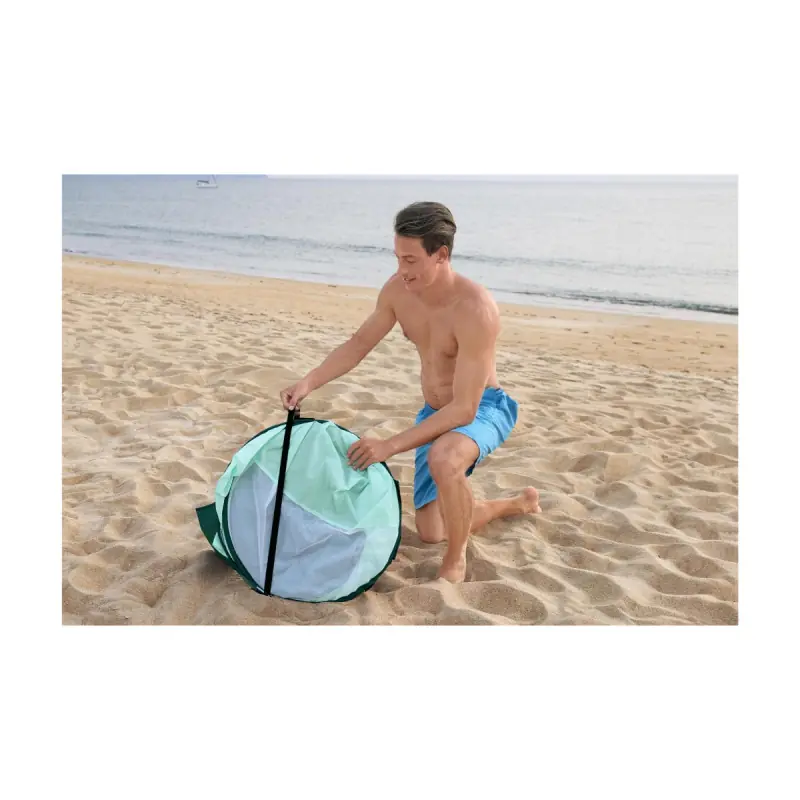 You were planning to have a lazy afternoon on the beach in the sun? With the BESTWAY pop-up beach tent 200 x 120 x 90 cm - Pavillo Quick, you can safely enjoy the joys of the beach and the sun with a friend. Comfortable and easily transportable thanks to its carry bag, you can set it up in an average of 3 minutes thanks to the pop-up technology that allows the tent to unfold by itself. Sun-friendly, this tent features a polyester fabric that has been treated with UV protection 80 to shield you from the sun while sunbathing on the beach or during a hiking break. Additionally, this tent is resistant to sunlight and does not fade with exposure. Furthermore, with its 2 side mosquito nets and a rear panel with a mosquito net, this product offers excellent ventilation.