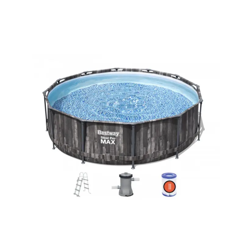 The BESTWAY round tubular pool - 366 x 100 cm - 9,150 L - wood pattern - Steel Pro Max - 5614x will be ideal for combating the summer heat in complete relaxation in your garden. With its significant dimensions, it can accommodate several people for enjoyable moments with family or friends. With a height of just 1 m, even children can swim without any issues. The installation is designed to be simple for users, requiring no tools. The pool has a good lifespan thanks to its DuraPlus liner, which is highly resistant to UV treatment protecting against the sun and a corrosion-resistant structure. The Steel Pro Max range includes stronger and larger pools than those in the Steel Pro range, allowing for maximum enjoyment during your swims.