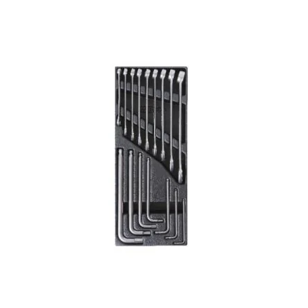 The BETA T23 tool kit features 16 essential pieces, including combination wrenches and hex keys, organized in a sturdy tray.