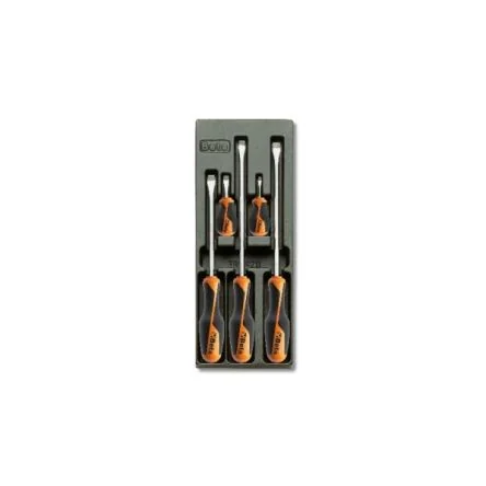 The BETA T201 is the hard thermoformed tray with tool assortment. This tool assortment consist of long and short screwdrivers for slotted head screws and there is 5 pieces in the set.The trey optimize the internal spaces and to neatly arrange the tools