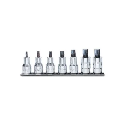 The BETA 920XZN series set of 7 socket drivers for XZN profile screws.Chrome plated 1/2 inch female square drive