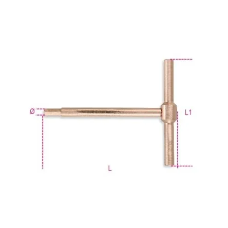 The BETA 951BA series is the t handle wrenches with hexagon male ends. The size of the hexagon wrench is the 5 mm. The overall length of the hexagon wrench is 100 mm.This socket wrench is Sparkproof