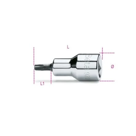 The BETA 920TX series socket driver for torx head screws. The size of bit head is T60.chrome-plated - burnished inserts 1/2 inch female square drive