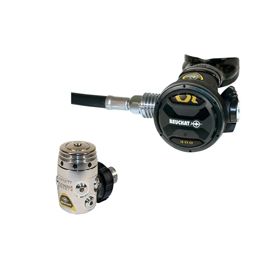 The Beuchat VR300 DIN 300 Bar Cold Water Regulator is a high-end diving regulator designed for both temperate and cold water conditions. Manufactured entirely in Beuchat's Marseille, France facility, each unit undergoes individual testing and adjustment on a specialized hyperbaric test bench to ensure optimal performance.