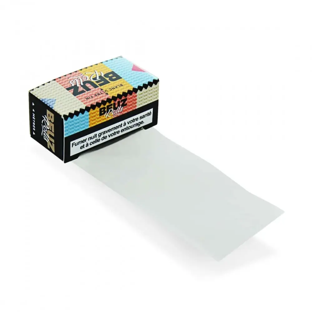 beuz rolls ultra thin x24 rolling paper ideal for lovers of rolled cigarettes looking for finesse and lightness. each roll measures 4m in length and 44mm in width providing 96 meters of paper in total with 24 rolls. made from 100% natural materials and featuring natural gum arabic these papers guarantee uniform gluing and perfect rolling.