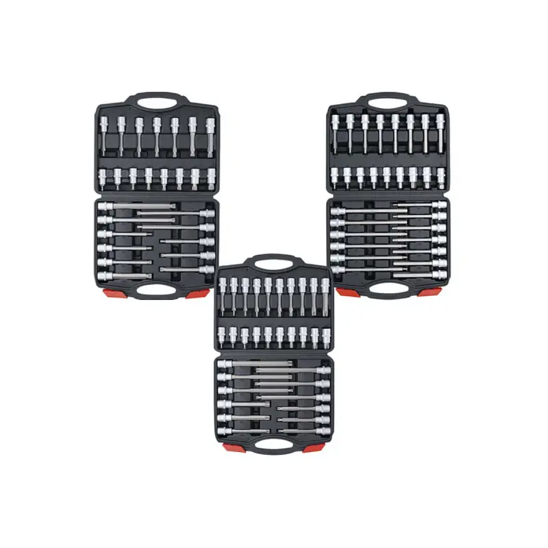 BGS Socket Bit Set - 88 pcs - 5186 this range of 12.5 mm (1/2") socket bits made of chrome-vanadium steel fits onto the square of the wrench, allowing for various mechanical tasks while keeping your workshop tidy thanks to the case.