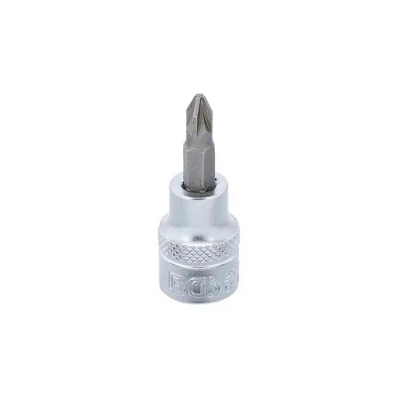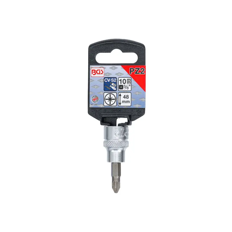 A BGS TECHNIC Bit Socket - 10 mm - PZ2 Crosshead - 2551 for tightening or loosening PZ2 crosshead screws, which will be very useful in your workshop. You can use it for many screwing tasks as it is resistant even to corrosion being made of chrome-vanadium steel.