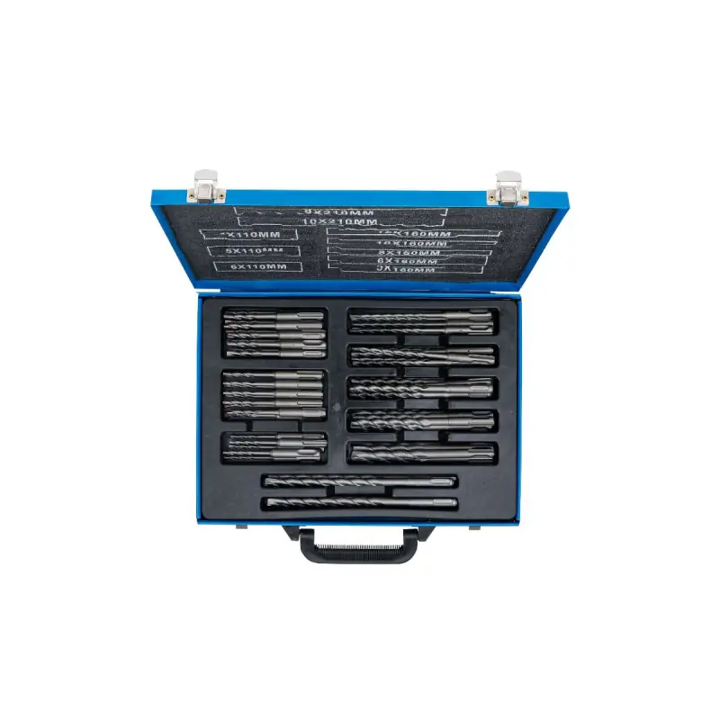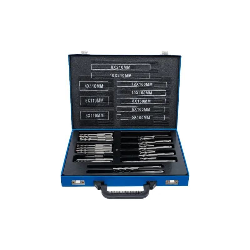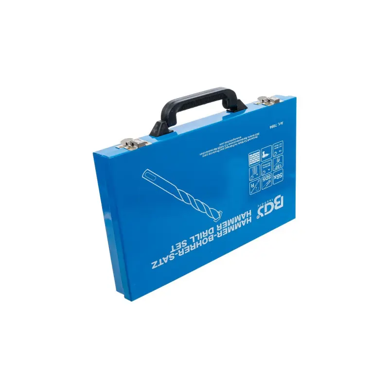 ThisSDS Shank Drill Bit Set BGS TECHNIC - 7894 consists of 56 bits of various sizes and diameters. The hard metal tip drill head allows for powerful drilling into concrete walls with ease. Delivered in a case, the bits are all neatly organised with a dedicated space for each size. You will find the sizes indicated on the top of your case to make your work easier.
