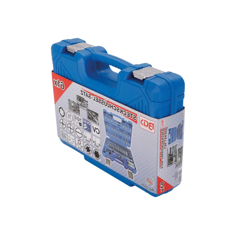This BGS TECHNIC Socket Set - 10 mm - 61 pcs - 2229 allows you to work with great flexibility thanks to the presence of several accessories: a reversible ratchet, a sliding extension, and a bit adapter. The set contains sockets of various sizes and shapes, providing you with an ideal solution in many situations. The chrome-vanadium steel construction ensures long-lasting durability.