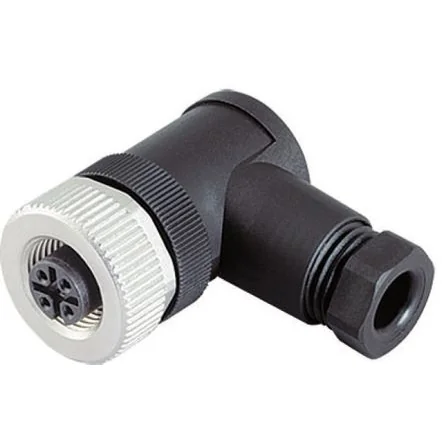 M12 female cable connector, series 713. From Binder, the 713 series of M12 Euro style sensor sockets designed for cable mounting. The re-wireable circular connectors have a threaded mating mechanism with A coding, preventing incorrect mating. Along with an IP67 ingress rating, the 713 series of female compact connectors are best suited to environments that demand a more rugged connector solution. Can be attached to M12 single-ended cable assemblies to make up jumper cables and interconnecting leads. Features and Benefits. • A coded, for sensors, DC power, and 1 G-bit Ethernet • 3, 4, 5 and 12-way variants • Straight or 90° cable entry • IP67 ingress protection rating • Gold plated brass contacts • Internal screw termination • A threaded mating mechanism for secure connection • Re-wireable –no special tooling required • Robust and compact design offering max performance. Applications. The 713 series of M12 connectors are best suited to industrial applications. They are generally used when connecting to sensors, actuators, and cylinders in the industrial field. Some of the most common areas are. • Factory automation • Process Control • Industrial automation and instrumentation • Commercial electronics • Food and Beverage • Robotics • Transportation • Sensors and switches. Environment. The 713 female connectors are waterproof and have an IP67 ingress rating. This means they are dustproof and are protected from jets of water from all directions. Ideal for wash-downs and other similar harsh environments. FAQ. Q - How robust are the connectors? A – The 713 series of M12 sockets are manufactured from high-grade engineering materials. They are strong, reliable Q – Are the connectors easy to terminate? A – Yes, this range of compact connectors have screw clamp terminals. So no special tooling is required. Q – Are there any additional accessories? A - There is a range of circular dust caps are available providing extra protection and maintaining the IP rating when the connectors are not in use. Female dust caps for sockets ; 706-7429 706-7429 , ; 706-7423 706-7423 and ; 706-7439 706-7439