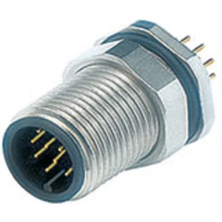 Durable M12 male circular connector with 12 contacts and IP67 rating for reliable performance.