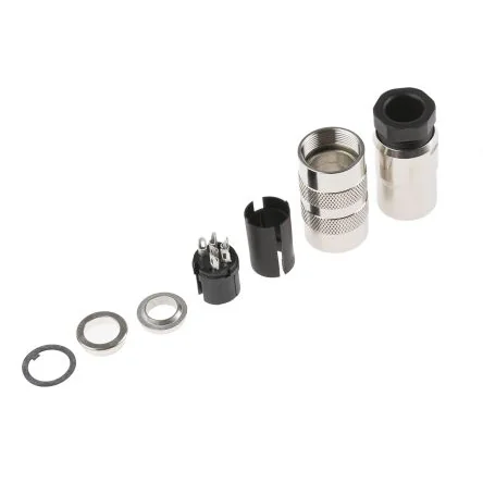 For Plugs see examples ; 115-2540 115-2540 , ; 274-3765 274-3765 and ; 308-9129 308-9129. Connector with shielding ring, shieldable. L = 61 mm, Ø = 18.5 mm