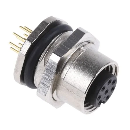 Durable M12 female socket with IP67 rating for secure panel mounting.