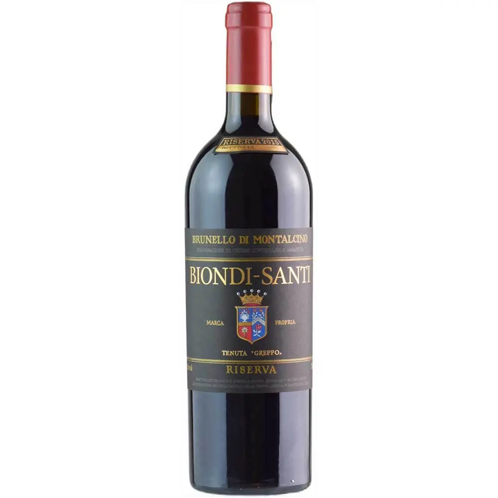 Biondi Santi is a renowned producer of Brunello di Montalcino, a red wine made from the Sangiovese grape variety. The Riserva is the flagship wine of the estate, made only in exceptional vintages and aged for a minimum of six years before release. The history of Biondi Santi dates back to the mid-19th century, when Clemente Santi began experimenting with the Sangiovese grape in the Montalcino region of Tuscany. His grandson, Ferruccio Biondi Santi, is credited with creating the first Brunello di Montalcino in the late 1800s, using a selection of Sangiovese clones from his family's vineyards.