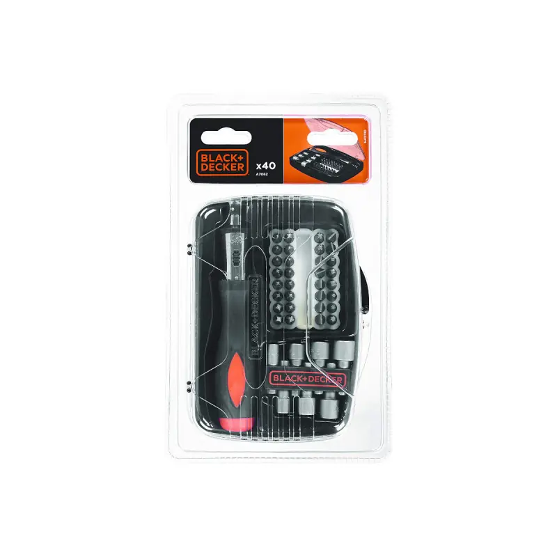 A BLACK and DECKER tightening kit - 25mm bits - Screwdriver - Socket wrench - 40 pcs - 7062-XJ