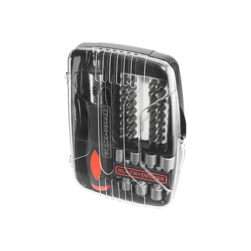 This BLACK and DECKER tightening kit will be your ideal ally for your screwing and unscrewing tasks. Combine the screwdriver with the various flat, torx, pozidriv, phillips, and square bits.