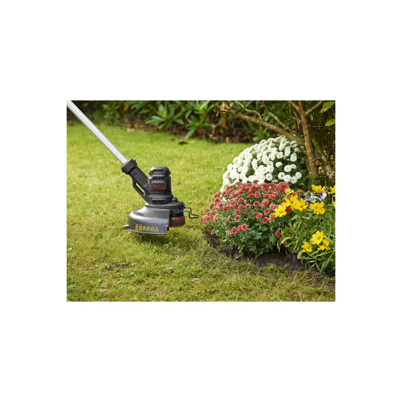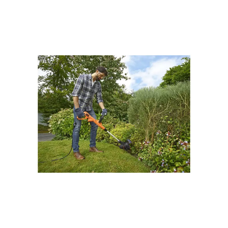 For a clean and well-maintained garden, choose the BLACK and DECKER Corded Strimmer - 30 cm - 550 W - BESTE630-QS! Thanks to its two ergonomic handles and telescopic shaft, you can adapt the tool to its user! Benefit from its powerful 550 Watt electric motor and a cutting width of 30 cm for better comfort and easier cutting of small areas. The rotation speed and power, thanks to a patented gear drive, allow for simple and effective use.