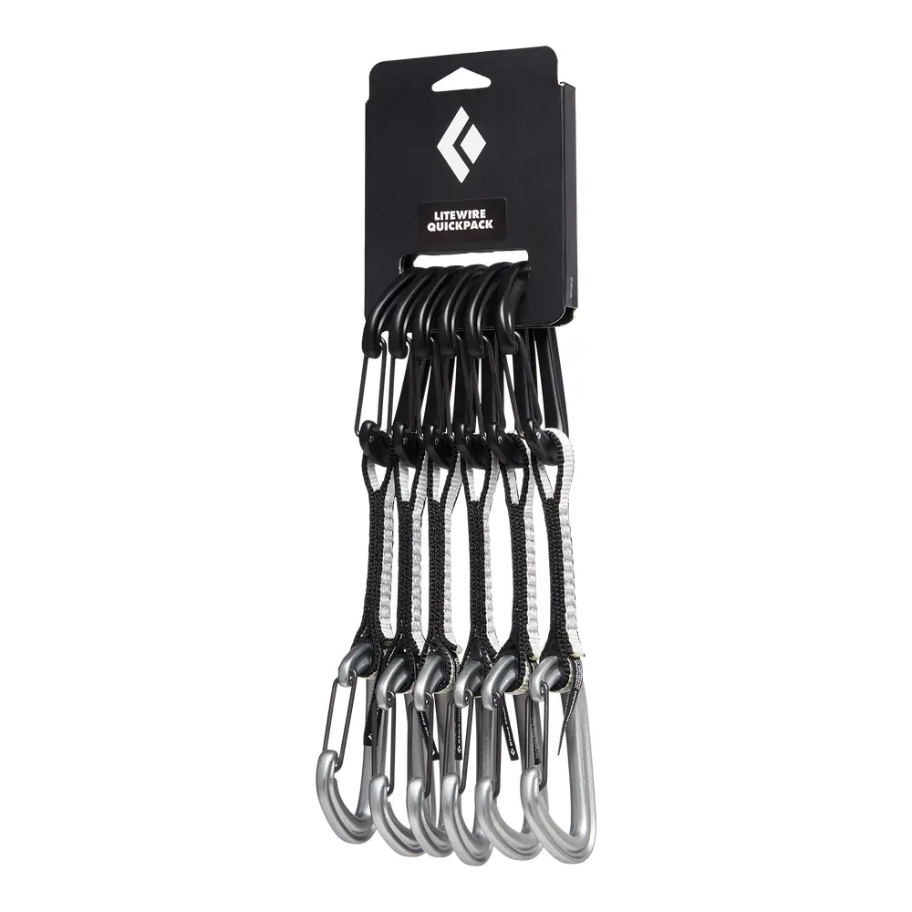 The Black Diamond LiteWire Quickdraw Quickpack is a set of six lightweight and durable climbing quickdraws, each featuring a 12 cm long, 12 mm wide Dynexâ„¢ dogbone. Designed for climbers seeking to reduce gear weight without sacrificing safety, these quickdraws are ideal for both single-pitch cragging and multi-pitch missions.