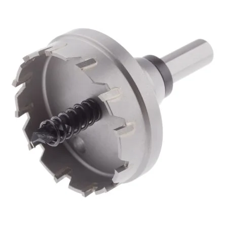 Arborless Tungsten Carbide Hole Saw. Long life and outstanding cutting accuracy without chatter or vibration Complete with 6mm HSS pilot drill For use on galvanised iron, stainless steel, fibreglass, asbestos, ‘Formica ‘ and other laminates