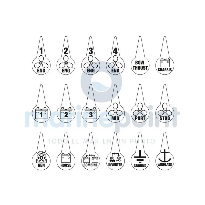 Customize and enhance onboard safety with this kit of 18 labels specially designed for Blue Sea battery switches and disconnectors. Made from durable materials, they withstand the marine environment and ensure clear identification of electrical circuits.