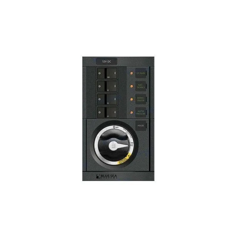 Efficiently manage two batteries with the Blue Sea Panel 360 DC disconnector featuring three switches.