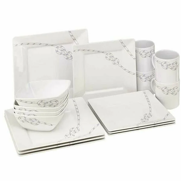Pacific 16-piece set made of unbreakable BPA-free lightweight melamine for food use.