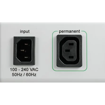 5. Bodo Ehmann Master / Slave Socket Strip, 6+1+1 IEC C13. Features and Benefits. Robust plastic, grey colour with black plastic end caps End caps with mounting facility IEC C13 sockets: 1 x master; 6 x slave; 1 x permanent IEC C14 input socket Automatic electronic switching with adjustable master activation threshold wattage (7 - 100 W) Slave "ON" LED indication Rated voltage: 250 V Power rating: 2300 W Rated current: 10 A
