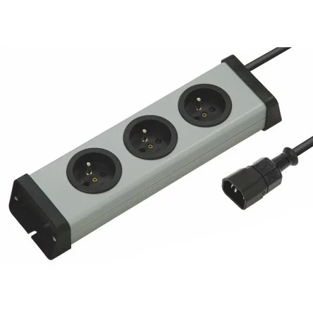 Bodo Ehmann Socket Strip, French Type E Sockets and IEC Plug. The EHMANN is a range of robust socket strips. It features 90 degree angled sockets, making a better use of the available space. This socket strip is RCD protected and comes with Type e French sockets and IEC 3 Pin connector with 1.5m cable. The trailing sockets can be floor or wall mounted. Robust grey plastic Integrated circuit breaker 10A 90 degree angled sockets and plug 64mm space between sockets 1.5m cable with rubber IEC 320 connector Type E French Sockets Increased touch protection Can be floor or wall mounted