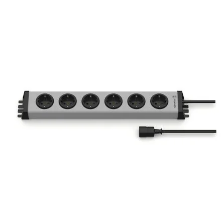 Bodo Ehmann Socket Strip 19", Shuko Sockets and IEC Plug. An EHMANN range of robust 19 rack mount socket strips. It features 90 degree angled sockets, making a better use of the available space. This socket strip comes with Type F Schuko sockets and IEC 3 Pin connector with 1.5m cable. The trailing sockets are suitable to be rack mounted, floor mounted or wall mounted. Robust grey plastic 90 degree angled sockets and plug 64mm space between sockets 1.5m cable with rubber IEC 320 connector Type F Schuko Sockets and plug Increased touch protection Integrated circuit breaker 10A 19 rack mount, floor mount, or wall mount