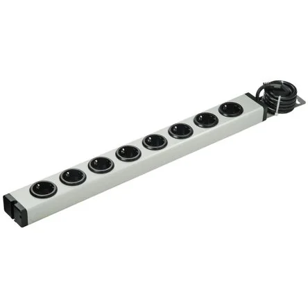 5. Bodo Ehmann Universal Aluminium Socket Strips, Type F - German Schuko. Features and Benefits. Anodised aluminium construction Built-in Type F German Schuko earthing contact sockets rotated 90° Extra large space between sockets: 64 mm Power cord: HO5VV-F 3G 1.5mm² Power cord fitted with angled CEE 7/7 plug Increased touch protection End caps have mounting facility Rated voltage: 250 V Rated power: 3600 W Rated current: 16 A