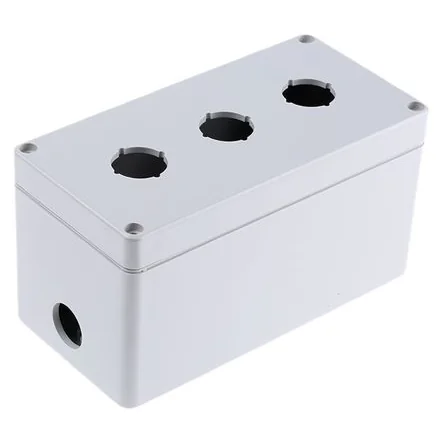 Durable light grey plastic enclosure with three 22mm cutouts, perfect for various applications.