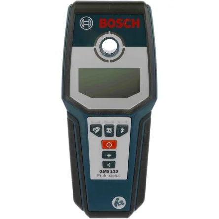 Bosch Metal DetectorThe Bosch GMS 120 metal detector is a new age device designed to detect deep-lying objects up to a depth of 120mm, among other things. It can detect Ferrous metals, non-ferrous metals, wooden substructures, live cables. This comes with a battery, a carrying strap, and a protective pouch. This device finds all objects and avoids application errors caused due to the automatic calibration.Features and Benefits3 colour LED luminous ring Automatic deactivation: 5min Automatic shutdown time of 5mins Illuminated LCD display Maximum detection depth, copper: 80mm Maximum detection depth, steel: 120mm Pinpoint indication of the object’s centre with the “;centre finder”; scale Power supply: 1x9V 6LR61 Weight: 0.27kgApplicationsCommercial Electrical system ResidentialCertificationsCE