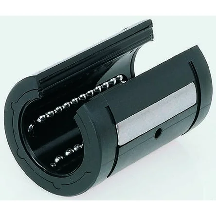 Super Ball Bushings with Seals - Series R0670 ; R0671. The Super-Linear Bushing has a built-in inertial error compensator, that compensates for the angle between the housing and shaft up to 0.5 degrees tilt without reducing the capacity due to angular pressure. Possible causes for internal errors include shaft flex due to heavy loads or inaccuracies in the connecting construction. The self-adjustment ensures effortless lead-in of the bearings into the loaded zone and even load distribution over the entire bearing row. The result is unparalleled smooth motion and a very high load capacity for the Linear Bushing. High travel speeds 5 m/s Offers shaft deflection and self-alignment up to 0.5 degrees Ball retainer with outer sleeve made of polyamide Hardened steel segmental load bearing plates with ground ball tracks Balls made from anti-friction bearing steel