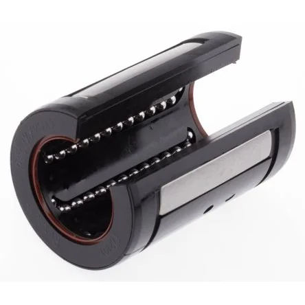 Super Ball Bushings with Seals - Series R0670 ; R0671. The Super-Linear Bushing has a built-in inertial error compensator, that compensates for the angle between the housing and shaft up to 0.5 degrees tilt without reducing the capacity due to angular pressure. Possible causes for internal errors include shaft flex due to heavy loads or inaccuracies in the connecting construction. The self-adjustment ensures effortless lead-in of the bearings into the loaded zone and even load distribution over the entire bearing row. The result is unparalleled smooth motion and a very high load capacity for the Linear Bushing. High travel speeds 5 m/s Offers shaft deflection and self-alignment up to 0.5 degrees Ball retainer with outer sleeve made of polyamide Hardened steel segmental load bearing plates with ground ball tracks Balls made from anti-friction bearing steel
