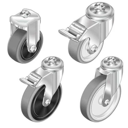 Durable Bosch Rexroth M12 castor wheels designed for easy transport of tool carts and small machines.