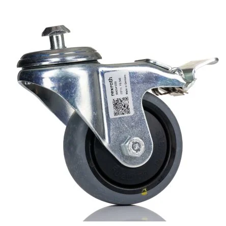 The Bosch Rexroth caster wheels or rollers are specially designed to be gentle on floors. They are suitable for ESD sensitive areas. Conductive material version in accordance with DIN EN 61340-5-1 conduction resistance = 106 O.Available in locking or non-locking versions Include reversible T-bolt that can be inserted either into the side (10mm T-slot) or end of a profile (M12 tap) Chemical-resistant, reinforced wheels (resistant to petroleum and alcohol based solvents) Floor-protective to prevent marring of floor surfaces Solid core abrasion-resistant, which are suitable for ESD and clean room applications