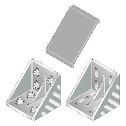 The Bosch Rexroth bracket 100/100 with centering lugs for rapid, precise assembly and protection against turning. It has centering lugs that can be easily broken off for assembly on plates or at right angles to the slot.Cover cap to protect from dirt Available signals are grey (RAL 7004) and black ESD (RAL 9005) Profile finishing is not required Version designLINE with special silver paint